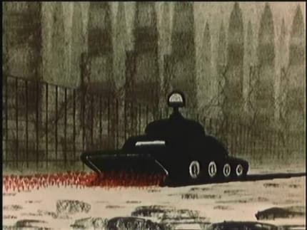 Tot în 1953 Miler a mai realizat un scurtmetraj cu titlul Brigada, însă nici criticii cei mai vehemenţi nu ar putea să-i reproşeze autorului că ar fi fost sluga regimului, fiind vorba mai mult despre supravieţuire în cazul lui. „Am realizat filme pentru copii, ceea ce poate deveni după o vreme plictisitoare, de aceea mi-am spus că ar fi bine să mai fac şi altceva – povesteşte cu decenii mai târziu. – Astfel am turnat Rudá stopa. Trăiam atunci în perioada comunismului, iar acest regim nu-ţi permitea altceva decât să te adaptezi. Toată lumea tânjeşte tot timpul după pace, aşadar asta a devenit şi tema filmului. Oricum, pacea era una dintre preocupările primordiale ale partidului comunist, de aceea ne-am decis în favoarea acestei interpretări. Am ales tehnica desenului în cărbune. Filmul era desenat pe hârtie şi conţinea multe imagini statice. Scenariul şi toate celelalte lucrări au fost realizate în primă fază împreună cu fraţii Bláha, care erau la fel angajaţi ai Krátký Film, unul pe post de operator, celălalt pe post de animator. Atunci când şi-au dat seama că echipa nu este prea încântată de acest film, rând pe rând s-au evaporat, până am rămas eu singur.” Acesta este deci desenul animat din 1962 cu titlul Rudá stopa (aprox. Pată roşie), care relatează martirajul unui tată şi lupta pentru pace a fiului său. Tancurile care defilează pe străzi constituie parcă o avanpremieră la primăvara de la Praga.